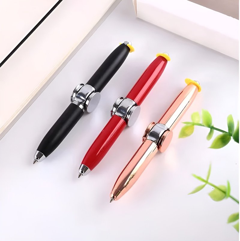 Bolígrafo giratorio de metal con luz, juguete antiestrés